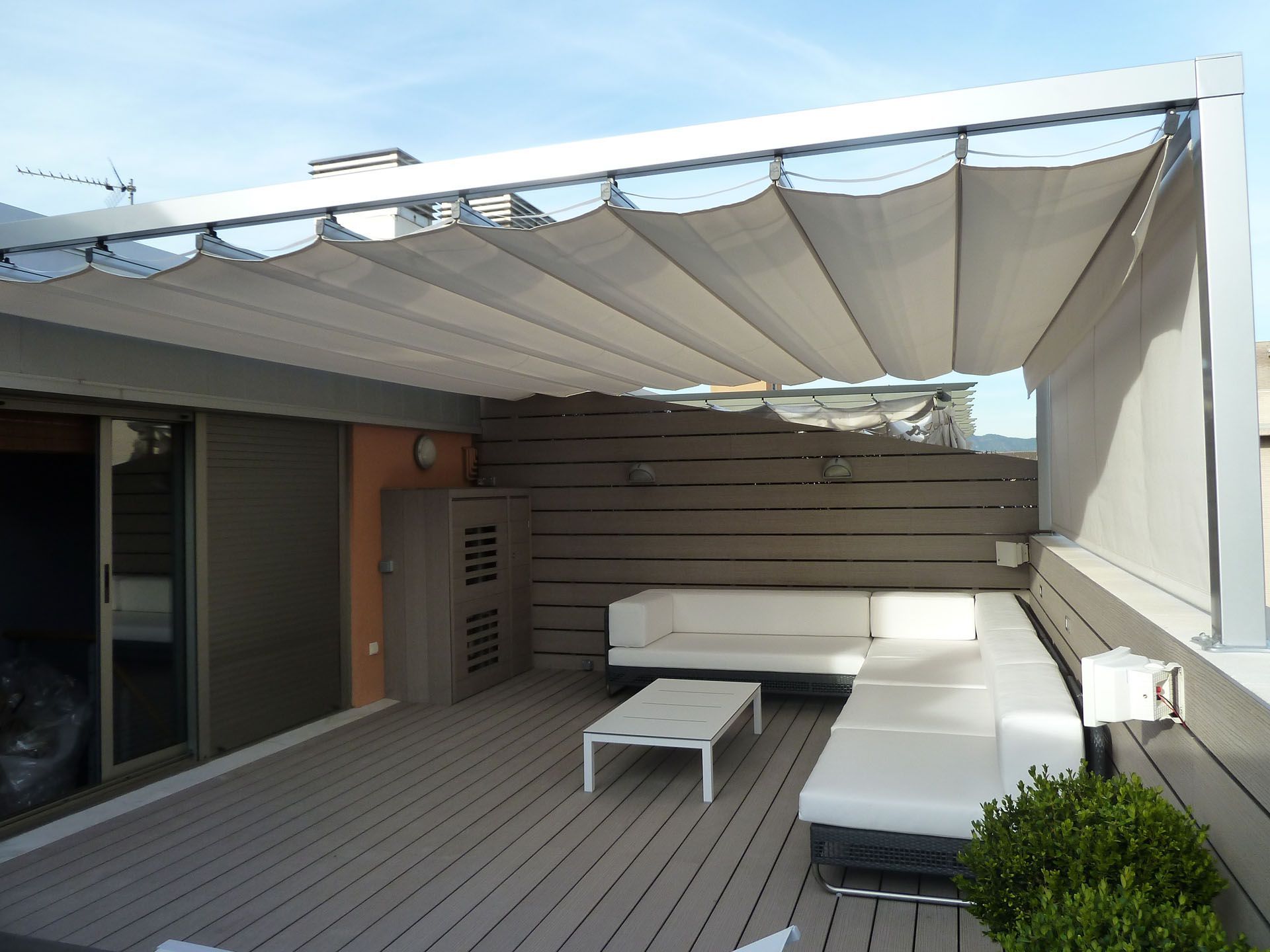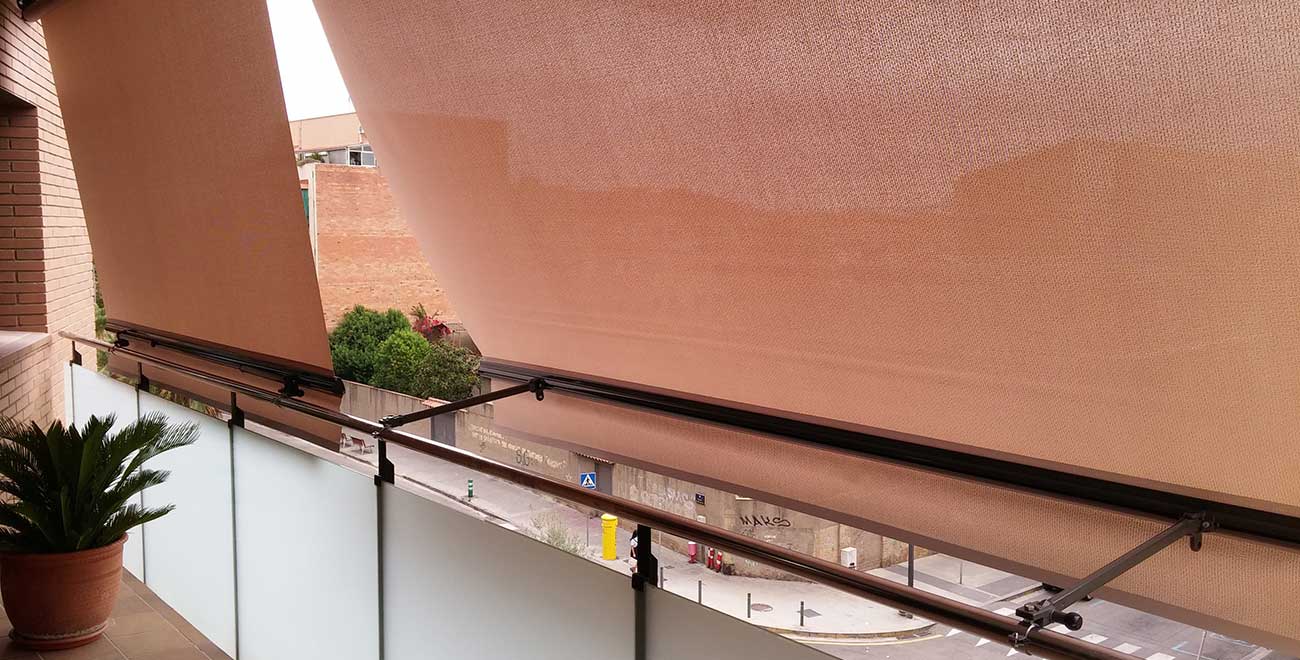 Son toldos ideales para lugares donde no es fácil la colocación de estructuras o guías, como puede ser una terraza o un balcón, locales comerciales.